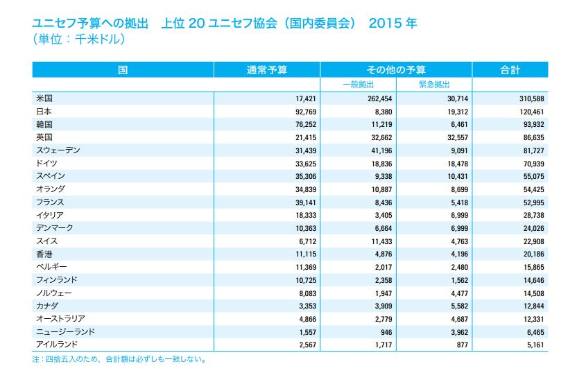 - ※10ユニセフ本部と各国内委員会が共同で行なう各種キャンペーンに対する分担金。