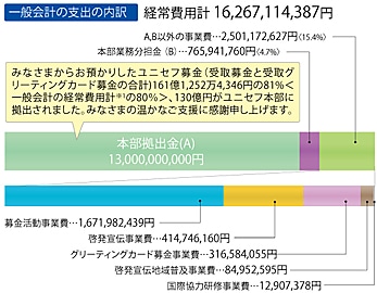 - ※6「世界子供白書」「ユニセフ年次報告」などの刊行物の作成・配布、ホームページの作成・更新、現地報告会やセミナー、シンポジウム開催、広報・アドボカシー・キャンペーンなどの費用。