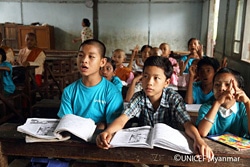 現在ミャンマーでは、様々な改革が進められていますが、ラカイン州で1年以上続いている住民間の衝突による対立が、それらの進捗を妨げたり、リスクにさらしたりするのではないかと、ユニセフは懸念しています。もしそうなれば、ミャンマーのすべての子どもたちに、遺恨を残す可能性があります。