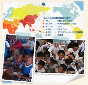 事業支出割合については「ユニセフの財政」をご参照ください。