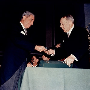 1965 ユニセフ、ノーベル平和賞を受賞 ユニセフは"promotion of brotherhood among nations(国家間での兄弟愛を促進した)"として平和賞を受賞。ユニセフによる子どもたちのための活動は、平和に向けた活動でもあると認められた。 |