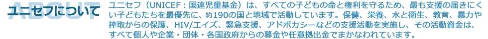 - 「子どもの権利条約」、「ミレニアム開発目標」、「ユニセフ事業計画」を枠組みとして、日本のODA(政府開発援助)による国際開発協力事業と世界各地におけるユニセフ支援活動との連携を促進する