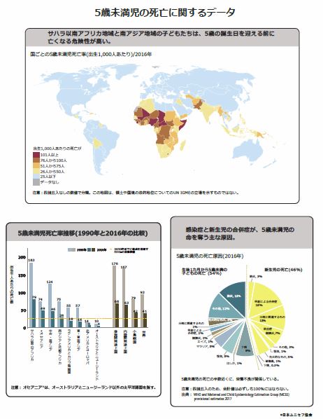 - 持続可能な開発目標(SDGs)のターゲット3.2では「2030年までに、新生児死亡率を少なくとも出生1,000件中12件以下まで減らし、5歳未満児の死亡率を少なくとも出生1,000件中25件以下まで減らす」ことを目指している。