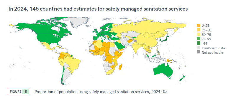 - 2015年から2024年までの間に、新たに12億人が安全に管理された衛生施設(トイレ)を使用できるようになった。