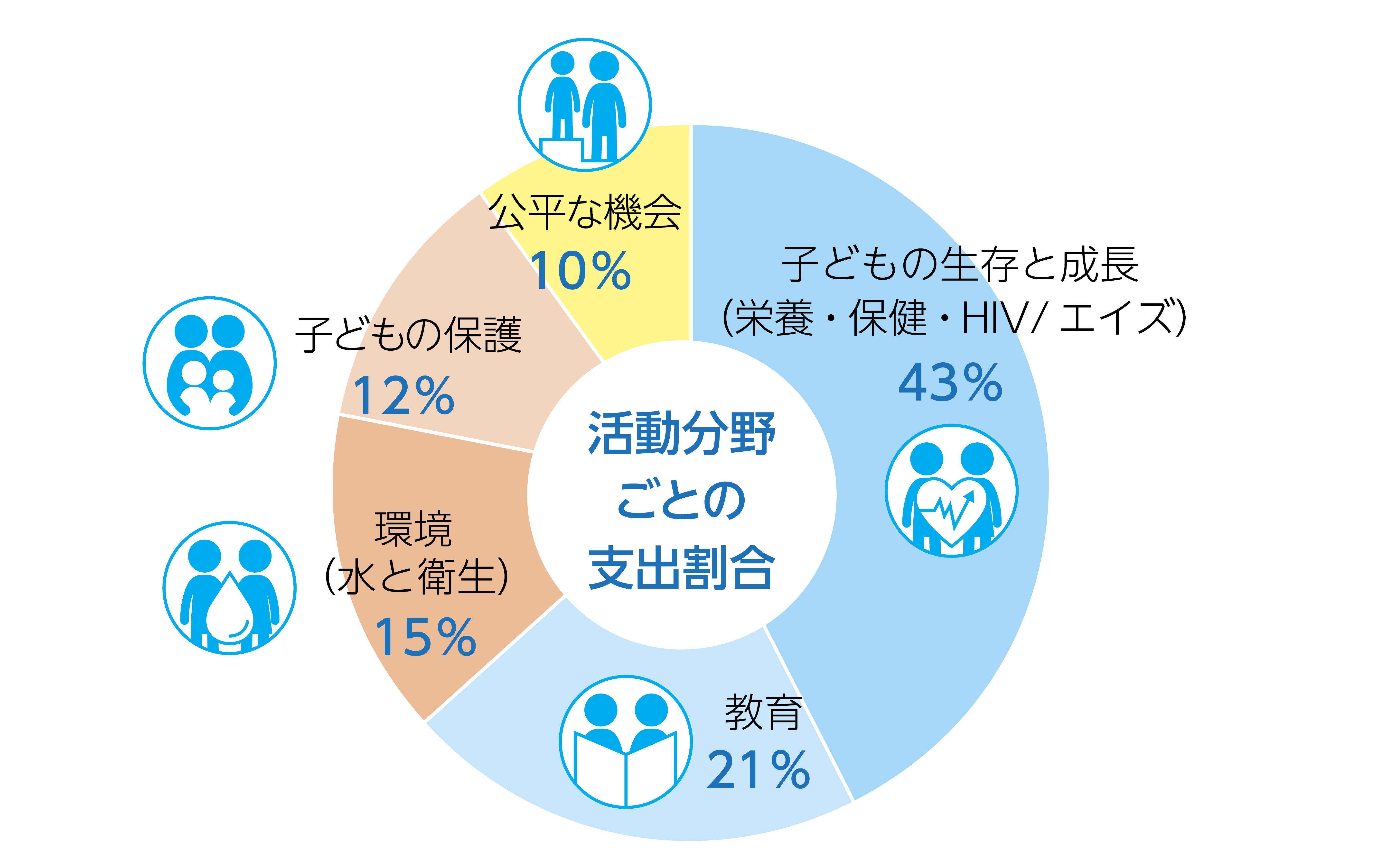 世界約190の国と地域で活動するユニセフの活動は、各国政府の任意の拠出と、民間の皆さまからのご寄付に支えられています。