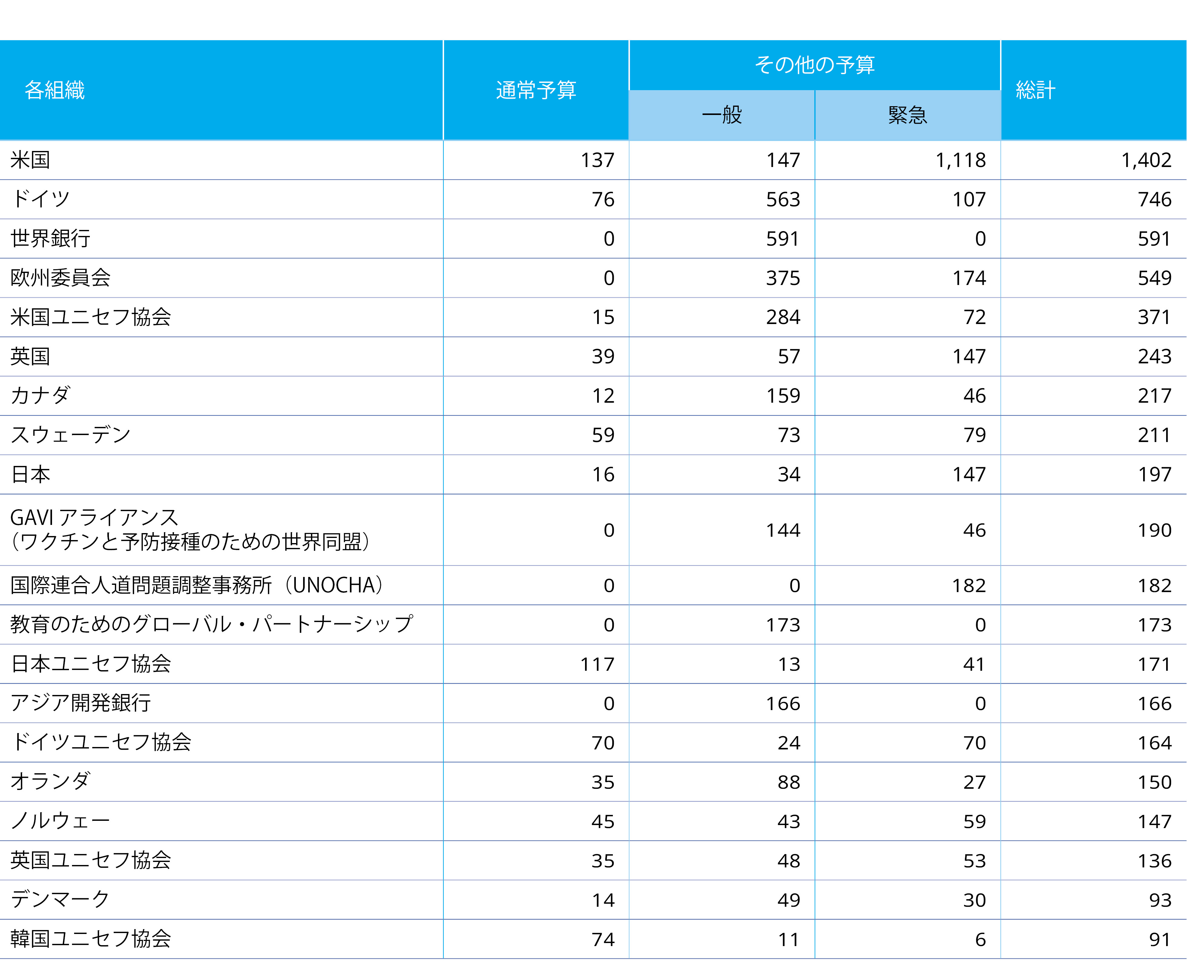 ユニセフ通常予算への拠出 上位15組織 2024年