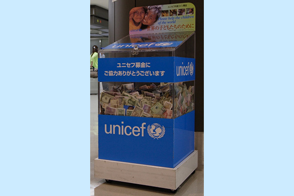 海外旅行や出張から自宅に持ち帰り家庭で眠ったままになっている外国コインを、子どもたちのために有効活用するユニークな支援方法が「外国コイン募金」です。国内の主要空港(新千歳、仙台、成田、羽田、中部、関西、広島、福岡)の税関に設置している専用募金箱などを通じて集まった外貨が、「外国コイン募金実行委員会」(毎日新聞社、日本航空、三井住友銀行、JTB、日本通運)各社やボランティアのご協力により、約1億4,440万円相当の募金になりました。