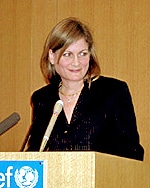 今日皆様が始められようとしているこの行動は、特に価値のあるものだと思います。これまで国内外で批准されてきた取り決めなどの重要な事例が結集されたということを意味するだけでなく、『子どもの売買、子ども売買春および子どもポルノグラフィーに関する子どもの権利条約の選択議定書』が推進しようとしている国レベル、二国間および多国間での取り決めの理想的な姿を正に反映しているからです。日本ユニセフ協会、ECPAT、世界観光機関の呼びかけに応じ、世界の多くの機関や団体が、JATA、JTBをはじめとする参加諸企業・団体に続き、コードプロジェクトに参加して、子どもの商業的性的搾取に対して総合的な対策に取り組まれることを希望いたします。