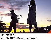 ユニセフ事務局長キャロル・ベラミー氏と子どもと武力紛争に関する国連事務総長特別代表のオララ・オトゥヌ氏は、子どもの権利条約の子どもの兵士に関わる選択議定書を10番目の国が批准したことに喜びの意を表しました。(10ヶ国が批准したことにより、この選択議定書は3ヶ月後に発効します。)この選択議定書は、子どもたちが徴兵されたり武力紛争で兵士として使われたりすることから守るもので、これまでに、アンドラ、バングラデシュ、カナダ、コンゴ共和国、ローマ教皇庁、アイスランド、ニュージーランド、ルーマニア、パナマ、スリランカ