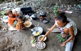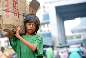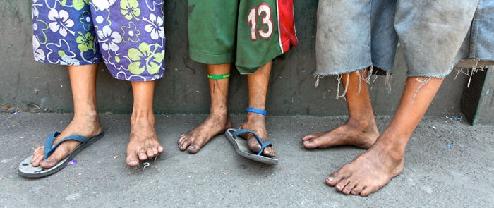 フィリピンには、マニラ首都圏に限っても約10万人のストリート・チルドレンがいると推定されています。そのほとんどが親の怠慢や虐待から家を離れた子どもたちです。路上で生活する子どもたちは、「サンパギータ」と呼ばれる花輪を売ったり、商店や工場の手伝いをしたり、物乞いをしたり、時には盗みをして生きのびています。2013年現地政府や市民団体が実施した調査によると、マニラ首都圏の17の地方行政区で特定された5,012人のストリート・チルドレンのうち、1,263人が家族の同伴なし、3,749人が家族とともに路上で暮らしていることが分かっています。