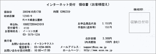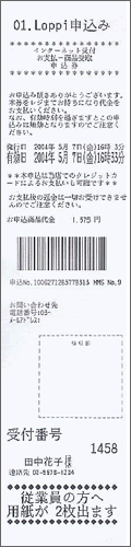お支払い後、「インターネット受付領収書」をお渡しいたします。実際にお支払いをされたことを 証明する書類ですので、大切に保管してください。「申込券」の有効時間は、30分間となっております。お早めにお支払いください。