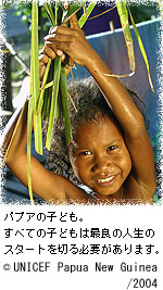 毎年、パプアニューギニアでは、13,000人の子どもが5歳になる前に亡くなっています。1日に35人の割合です。そのうち約8,000人は1歳の誕生日すら迎えられません。死因は、低体重出生、マラリア、栄養不良、下痢、肺炎、はしかなどです。将来的には、現在おとなの人口の1〜3%が感染しているHIV/エイズの広がりが、さらに深刻な影響を与えるだろうと予測されています。