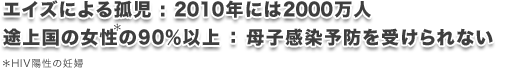 HIV/エイズが世界の脅威と言われ25年余。この間、世界は「エイズ」を主に「おとなの問題」として捉え、HIV/エイズによって直接・間接の被害を受けている「子ども」の問題は忘れられてきました。