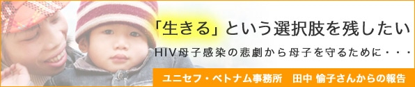 | 【1】ベトナムのHIV/エイズ事情と母子感染の現実 1/2 | 【2】HIV母子感染を防ぐ ユニセフの取り組み |