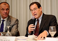 | DCワシントンDCの記者会見で話すジミー・コーカーHIV/エイズ担当部長。 |