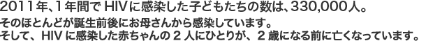 2011年、推定33万人の子どもたちが新たにHIVに感染しました。
