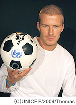 2004年12月、ベッカムは正式に『チーム・ユニセフ』に参加し親善大使となりました。そのちょうど1ヵ月後の2005年1月、インドネシアのスマトラ沖地震で発生した津波で被災した子どもたちを支援するユニセフ募金活動で、ベッカムは大きな役割を果たしました。