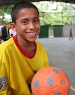 しかし、ハロルドは、近所のほかの少年たちよりもそういった誘惑のワナにかかる危険性が低いといえます。サッカーが大好きなハロルドは、ゴロンビアノ・プロジェクトに加わりました。このプロジェクトは、サッカーを利用して、非行や犯罪から子どもたちを守ろうというものです。ユニセフが支援するこのプロジェクトは、自尊心と人を敬う気持ちを育てるものでもあります。