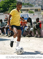 サッカーには、イブナがこれまで経験してきた大変な暮らしを埋め合わせてくれる何かがあるのかもしれません。ジェルメーヌを手助けしてイブナを学校に入れてくれた教師のソフィア・ピエールは、次のように話してくれました。「イブナは以前より楽しそうです。サッカーをしているときはいうまでもなく、サッカーを見学しているときでさえ、楽しそうにしています。」