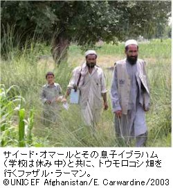 ファザル・ラーマンは、記入の終わった出生登録証を束にまとめて、トウモロコシ畑の反対側、数百メートル離れた集落へ向かいます。畑で働くより、こちらのほうが「ピクニック」のようで楽しい、とファザルは言います。しかし、その一方で、自分の予防接種委員と出生登録員としての仕事が、アフガニスタンの未来そのものにとって重要な仕事であることをわきまえています。「私はサービスを提供している。それは心得ています」彼は微笑みながら語ります。「たくさんの人たちの役に立つ仕事ができてとてもうれしいですね」