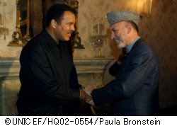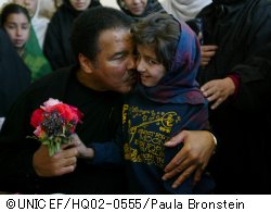 国連平和大使のモハメド・アリ氏は、23年間内戦に苦しんだ国、アフガニスタンを訪れました。社会の復興のようすを視察し、国際社会に支援を呼びかけようと、ユニセフとWFP(世界食糧計画)がコーディネートして、3日間にわたるアリ氏の訪問を実現しました。