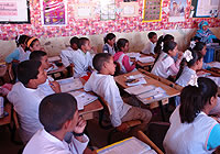 マイモウナちゃんの学校の教室は、女の子と男の子で溢れ、皆楽しそうに、活発に算数の授業に参加しています。