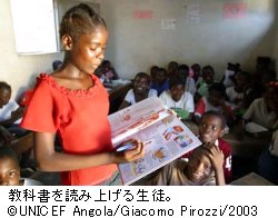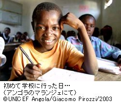 「バック・トゥ・スクール・キャンペーン」は、内戦後のコミュニティに、安定した普通の生活を取り戻すために重要なばかりでなく、国連の「万人のための教育」の目標を実現させる、大切な一歩を踏み出す大きな決意を示したものとしても重要なのです。「教育ほど影響力の強い分野はありません」と、ユニセフ・アンゴラ事務所の教育担当の責任者、フランシスコ・バシリは言います。「人権の実現のためのカギであり、すべての開発の中心となるものですから」