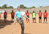 アンゴラのカクアコ町で、スールシャールさんは、カトリックの修道女が運営する第861学校を訪問しました。生徒数は1500人、成人向けに、夜間の読み書きの授業も行っています。 この学校では、多くの生徒がサッカーのスーパー・スターの訪問を待ち構えて、ふたつのチームがスールシャールさんと試合をできるように準備していました。スールシャールさんは、その挑戦に快く応じて、どちらもボールを持てるように、両チームに加わることにしました。