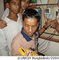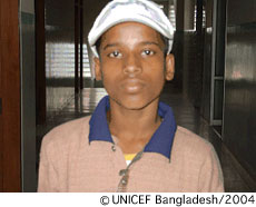 アジズールはここ数年、すごくがんばりました。BEHTRUC(「困難な状況にある都市部の子どもたちへの基礎教育プロジェクト」。バングラデシュのミルプールにあり、プロシカというNGOによって運営されている)を卒業した彼は、2004年4月から11月まで、バングラデシュの首都ダッカにあるダッカ・アサニア・ミッション職業訓練機関に入りました。ユニセフの支援のもと、この職業訓練機関は、アジズールのような働く子どもたちに種々の訓練プログラムを実施しています。