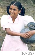 ファティマは3年前、近所の家のテレビで初めて「ミーナ」というアニメを見ました。ユニセフ制作のこのアニメは、主人公である10歳のバングラデシュの女の子が、女の子に害を及ぼすような伝統的な習慣に疑問を抱いて立ち向かい、自分の権利を実現する道を切り開いていくというストーリーで、それらを通して女の子の教育を呼びかけています。「両親に話したの。ミーナみたいに学校に行きたいって。2人の姉さんはちょうど私くらいの年で結婚してしまったわ。でも、ミーナが女の子はそんなに早く結婚するべきじゃないって言っていたの」お父さんは一番小さな娘がまるで男の子のように学校に通うことに戸惑いましたが、反対はしませんでした。