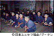 地方によっては今の子どもたちが学校教育を受ける初めての世代となっている。プナカ県ゲンシャリ村(約70世帯)のコミュニティスクールは、村の人々が協力して建てた地域小学校である。車が通る道路から山道を30分ほど登った山腹に平屋建て3部屋の校舎がある。