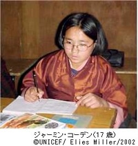 女子教育への支援は、ユニセフが取り組んでいる世界的優先課題のひとつです。ブータンでは、男女の不平等は他国と比べてそれほど顕著ではありませんが、データによると、男女間の就学率には大きな格差(男子82%、女子62%)があります。この傾向は、特に学校までの距離が遠く、毎日の通学が困難な辺境の地域で顕著になっています。学校に行くのに歩いて片道2〜3時間もかかり、途中で川を渡ったり森を抜けたりしなければならず、野生動物に襲われる危険があるところも多くあります。学校までの距離を考えて、親が危険にさらされやすい女の子の身を案じたり、さらに家事を手伝ったりしなければならないために、女の子が学校を辞めさせられることが多く、女子の就学率の低さに関係しています。