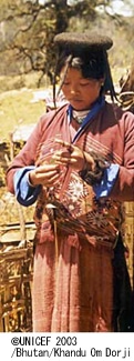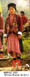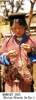 起伏に富んだ国土と偏った人口、校舎・教材・設備の不足が、ブータンの女の子が学校に通う妨げとなってきました。女の子は家にいればいいという伝統的な考え方が、さらに問題を難しくしてきました。学校外教育は教育面での男女間のギャップを解消しようとするユニセフの努力の中心になるもので、2007年までにすべての子どもに初等教育を受けさせるというブータン政府の目標を後押ししています。