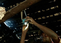 二人は20歳のバレリ・マニラキザさんの家を訪れました。バナナの木の下で休んでいる彼女は、マラリアを患い気分が優れなかったのですが、LEDライトについては得意げに話しました。「昨晩、私は全く心配しないで外に出かけられました。子どもも明かりを使って、夜に勉強していたんですよ」