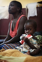 | バンギ小児病院で、高たんぱく高カロリーのペースト状栄養食を食べる女の子 |