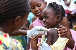 2013年、中央アフリカ国内の情勢や人道状況が悪化の一途をたどる中でも、同国の5歳未満の子ども80万人のうち約50万人は、はしかの予防接種を受けることができました。