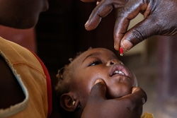 | バンギのPetevo 保健センターでビタミンAを投与される女の子 |