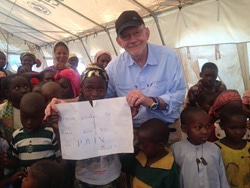 | バンギを訪れたユニセフのアンソニー・レーク事務局長と、中央アフリカ共和国の子どもたち |