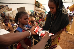 バンギ市内とビンボ(Bimbo)の36カ所で避難生活を送る世帯の88%が、殺虫処理を施した蚊帳を1世帯につき2張受け取り、5歳未満の子どもの78%がはしかの予防接種を受けた