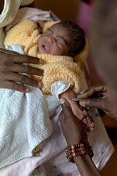 | 首都バンギの病院で予防接種を受ける赤ちゃん(2012年撮影) |