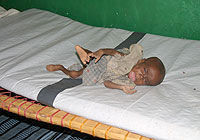 | ゴズ・ベイダの栄養治療センターで手当てを受ける栄養不良の子ども |