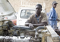 | ドワ・サムナさん(19歳)は、今、チャドの首都ヌジャメナのガレージで働き、以前とはまるで違う日々を送っています。ドワさんは、16歳の時チャドの政府軍に入りましたが、政府は翌年、ドワさんの実年齢を確認すると、彼を除隊させました。 |