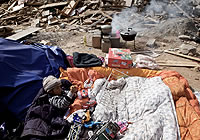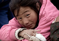 | 2010年4月17日、地震が起きた中国青海省玉樹地区の第三小学校で、緊急の食糧支援を待つ子ども。今回の地震で、この小学校では少なくとも34人の生徒が亡くなりました。 |