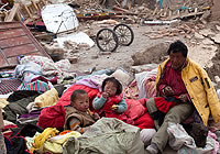 | 中国青海省の地震で家の下敷きにされた家族。この家族は4時間後に無事に救出されました。 |