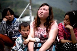 | 地震の被害を語り、涙する母親。蘆山県で。 |