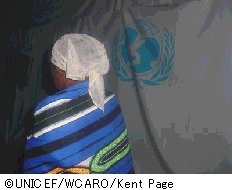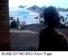 コンゴ民主共和国のほかの地域でも、ユニセフは性的暴行を受けた女の子や女性たちに同じようなサービスを提供しています。また、性的暴行を受けた女性や子どもたちを発見できるようコミュニティを中心とした支援ネットワークの強化も行っています。女性、若者、宗教者グループに、情報を提供したり、支援を必要としている女性や子どもに対処する方法などについても研修しています。また、社会への復帰、性的暴行の防止に向けての活動も始められています。具体的には保健員、軍人、警察、女性グループ、そのほかの人たちに対する性的暴行についての研修、避難民キャンプの女性や子どもの安全のための電灯の提供などです。 |