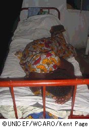 サフィが治療を受けているゴマの病院はDOC(Doctors On Call for Service=待機医師派遣サービス)によって運営されている病院で、保護と治療を必要としている人たちを男女問わず受け入れていますが、病棟は男女に分けられプライバシーが保たれています。ユニセフ・コンゴ民主共和国事務所は、病院に必須医薬品と外科用機器を提供し、現在、女性用の病棟を建設しています。女性病棟ができるまでの間、2張りの大型テントが提供され、ベッド、マットレス、毛布、蚊帳も提供されました。今はサフィとそのほか55人の女性や女の子たちが滞在しています。ユニセフは、ほかの団体とパートナーシップを結び、性的暴行を受けた女性や女の子を探し出し、治療が受けられるよう病院に紹介するシステムをとっています。ユニセフは、また、こうした女性や女の子たちをコミュニティにうまく戻す方法について、心理社会療法士を対象に研修を実施しています。 性的暴行の結果、妊娠してしまった女性や女の子はサフィ以外にも数人います。しかし、それよりもケースとして多いのは、性的暴行が元で身体的苦しみを受けている女性や女の子たちです。こうした女性たちは、暴力によって「性器こうろう」になってしまうのです。これは、膀胱と膣、あるいは直腸と膣との間に穴が開き、尿や大便が漏れてしまう状態を言います。2003年4月〜9月の間に、病院にまわされた女性や女の子150人に手術がなされました。破損状況や感染状況によっては何度も手術を必要とするときがあります。2003年4月以来、性的暴行で病院にまわされた女性や女の子の件数は、973件で、7歳の女の子から80歳の老婦人にまでわたっています。病院にいる女性や女の子の12%はHIV陽性、性病にかかっている女性たちは38%に及びます。