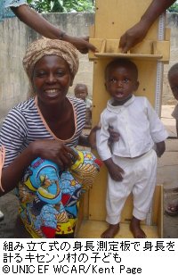 同国では1998年の内戦以降、保健サービスの低下や経済の悪化などのため、国民、特に子どもたちの栄養不足が目立っています。2001年の全国調査では重度の栄養不良児が110万人(全児童の13%)に上ることが分かりました。ユニセフは政府と協力して、5歳未満児と妊婦、授乳中の母親の栄養改善に取り組んでいます。