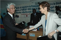 ユニセフのピエレット・ブ・ティ代表は、日本政府が、コンゴ民主共和国における保健事業を継続的に支援していることの重要性を強調し、次のように述べました。「この支援は、日本政府のコンゴ民主共和国における予防可能な病気への取り組みに対する強い決意が目に見える形として表れたものです。また、子どもたちに健やかな人生のスタートを切るための最高の機会を提供し、ミレニアム開発目標達成に向けた取り組みを後押しすることにもなります。過去2年間で、8つのポリオ再発の症例が確認されており、感染症撲滅に向けて、私たちは気を緩めることはできません。」