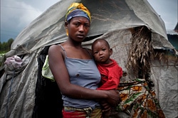 | 避難してきた母子。紛争に巻き込まれている人々の半数以上は子どもたちであり、子どもたちの将来にも大きな影響を与えている。 |